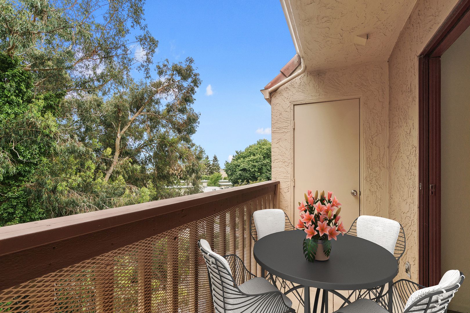 • Sliding glass doors to private balcony with large storage closet
