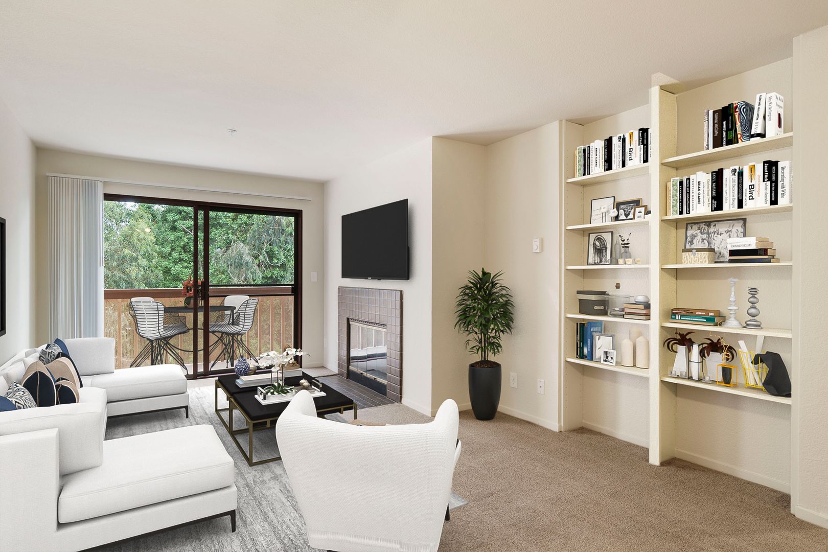 Thoughtfully designed interiors feature galley kitchens with breakfast bar, oak or oak-trimmed cabinetry, and white, cream, or stainless steel energy efficient appliances including refrigerator, electric range, microwave, dishwasher and disposal. Living rooms are warm and inviting with sliding glass doors to a private deck with storage, and third and fourth apartments also feature cozy fireplaces. Spacious bedrooms and well-appointed baths create an inviting retreat for the end of a busy day, while select plans even offer dual master suites.