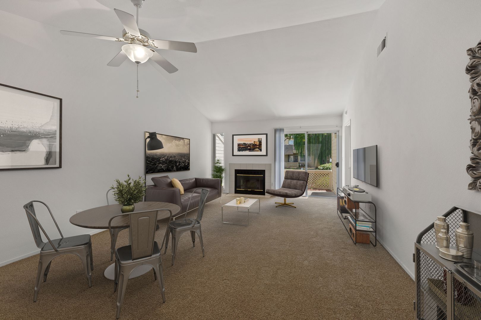 Thoughtfully designed, open and flowing floor plans feature wood burning fireplaces, vaulted ceilings (per plan), private patios or decks (per floor) with storage, full-sized washer/dryer, spacious master bedrooms with walk-in closet, and elegant baths with vanity, chrome fixtures and easy-care one-piece tub/shower surrounds.