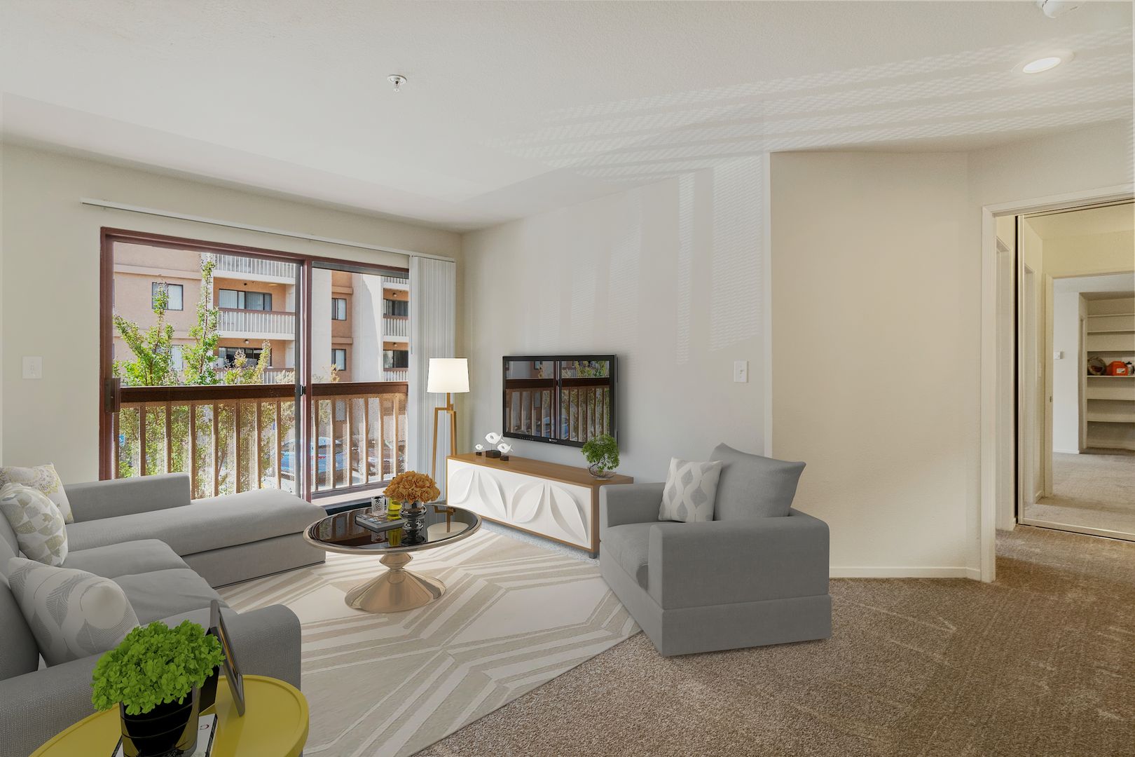• Sliding glass doors to private balcony with large storage closet
